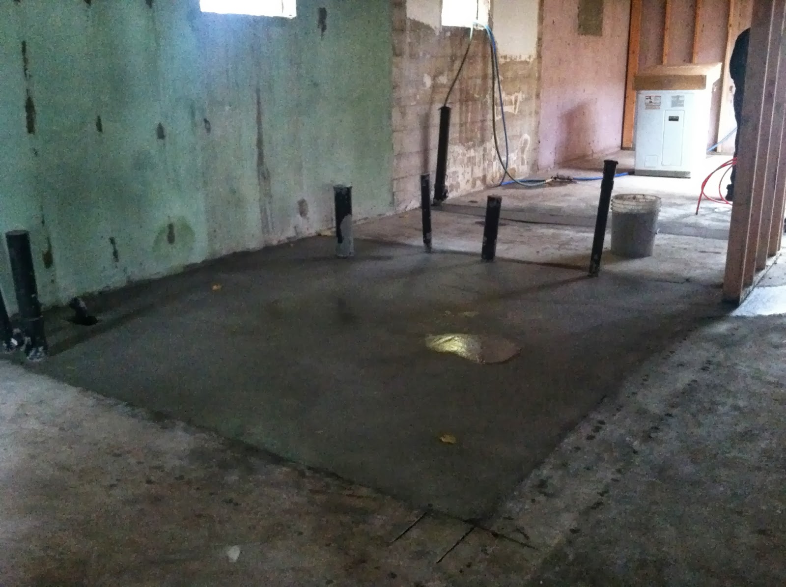 We ordered concrete and filled in the basement floor voids and the pier footings.
